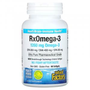 Омега-3 кислоты, 1260 мг (630 мг в капсуле), RxOmega 3, Natural Factors, 60 капсул