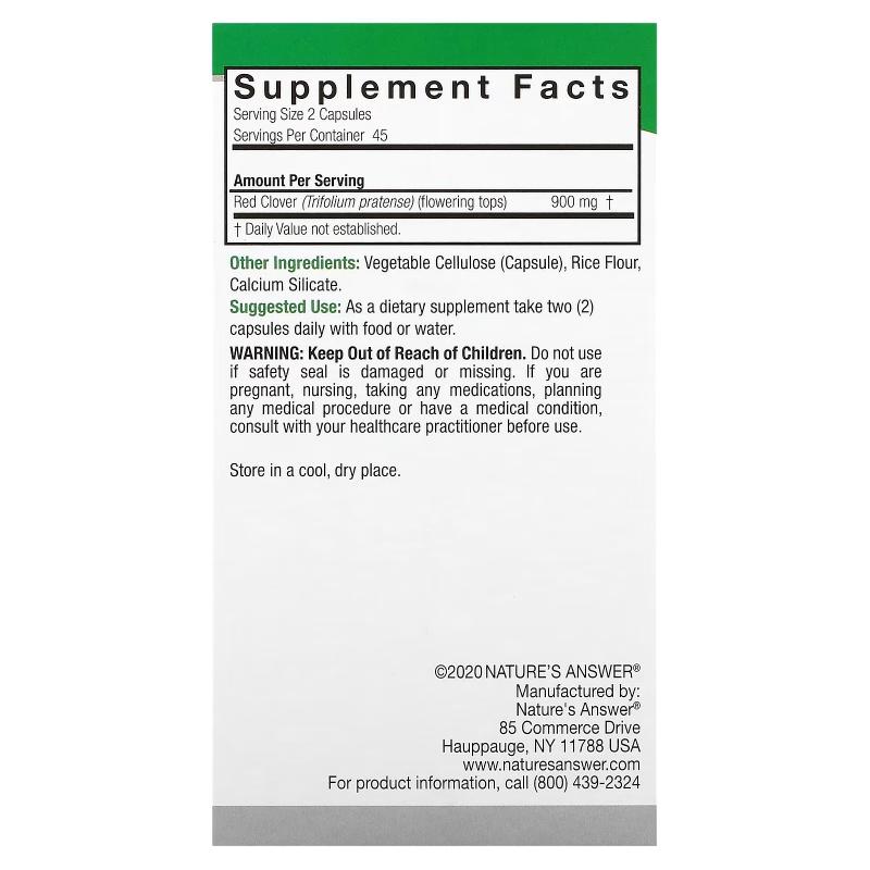 Красный клевер, Red Clover, Nature's Answer, 450 мг, 90 вегетарианских капсул (NTA-16314)