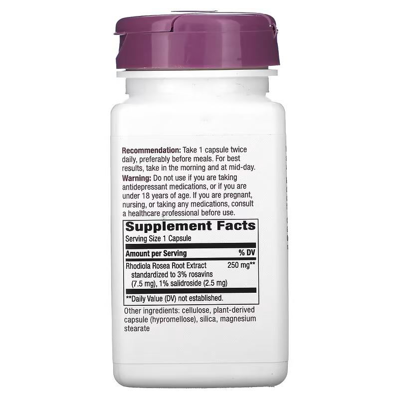 Продукт от Nature's Way также может оказывать положительное влияние на когнитивные функции, такие как память, концентрация и умственная ясность. Она может помочь повысить когнитивные способности и улучшить работу мозга. Родиола обладает антиоксидантными свойствами, которые помогают защитить клетки от повреждений, вызванных свободными радикалами. Это способствует общему здоровью и защите организма от вредного воздействия окружающей среды. Пищевая добавка имеет в составе целлюлозу, капсулу растительного происхождения (гипромеллоза), диоксид кремния, стеарат магния.