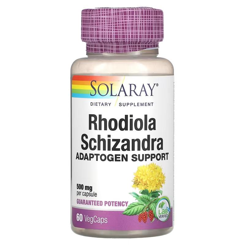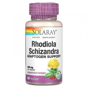 Родиола и лимонник, Rhodiola Schizandra, Solaray, 500 мг, 60 вегетарианских капсул