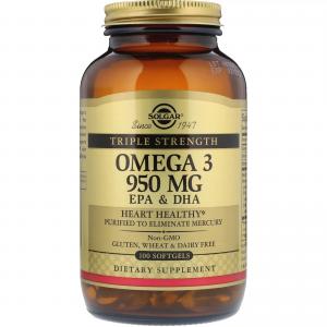 Рыбий жир, Омега - 3 (Omega-3, EPA DHA), Solgar, тройная сила, 950 мг, 100 капсул