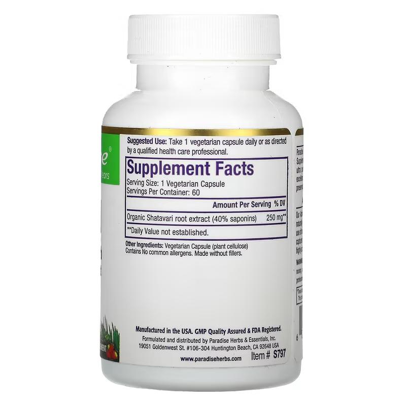 Шатавари - это натуральный растительный препарат, выпускаемый компанией Paradise Herbs, который содержит высококачественный экстракт корня шатавари (Asparagus racemosus). Каждая бутылочка содержит 60 растительных капсул, каждая из которых содержит 500 мг экстракта шатавари. Если вы ищете качественный препарат шатавари, который может помочь вам поддерживать здоровье женской репродуктивной системы и уменьшить симптомы менопаузы, то вы можете купить Шатавари от Paradise Herbs. Препарат выпускается в удобном формате капсул, что делает его легким в использовании.