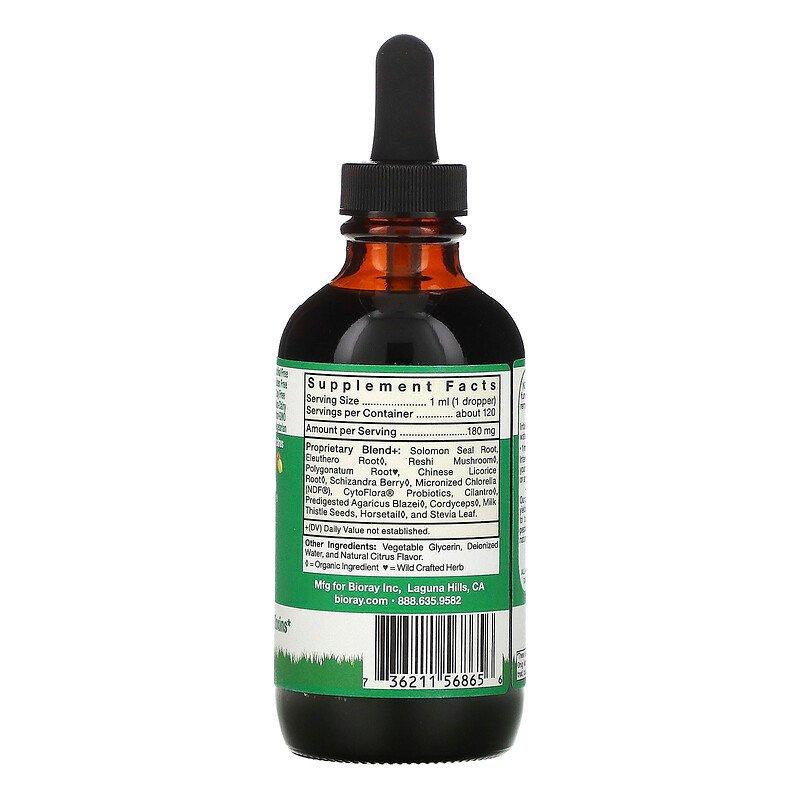 | Запатентованная смесь+: корень купены лекарственной, корень женьшеня¤, гриб рейши¤, корень купены душистой♥, корень китайской солодки¤, ягоды лимонника китайского¤, микронизированная хлорелла (NDF®), пробиотики CytoFlora®, кориандр¤, предварительно ферментированный агарик бразильский (Agaricus Blazei)¤, кордицепс¤, семена расторопши, хвощ¤ и листья стевии. |