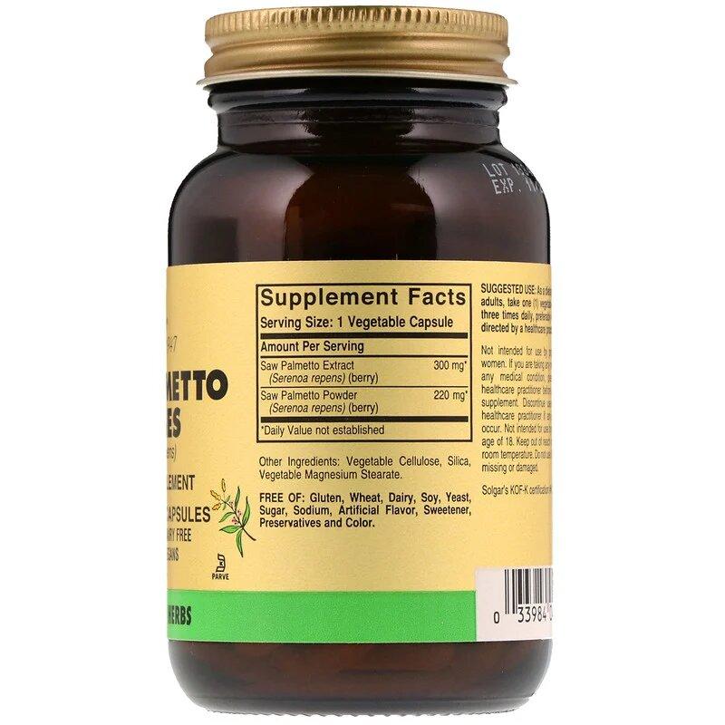 Solgar Saw Palmetto — это БАД на травах, разработанный компанией Solgar, которая выпускает натуральные добавки из экологически чистых растений начиная с 1947 года. Препарат помогает улучить состояние простаты и яичников, остановить сильное выпадение волос у женщин, в том числе вызванное гормональным сбоем. Он полностью состоит из растительных компонентов и подходит для вегетарианцев.