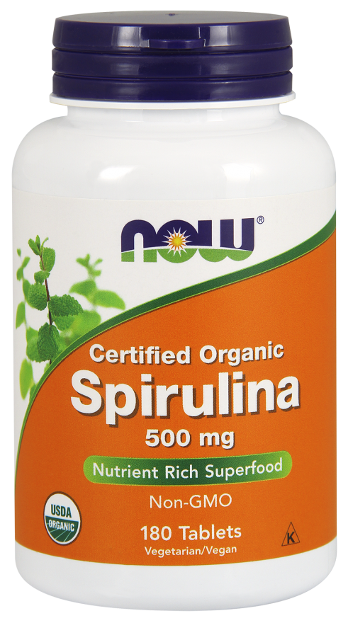 Спирулина, Spirulina, Now Foods, сертифицированная, 500 мг, 180 таблеток