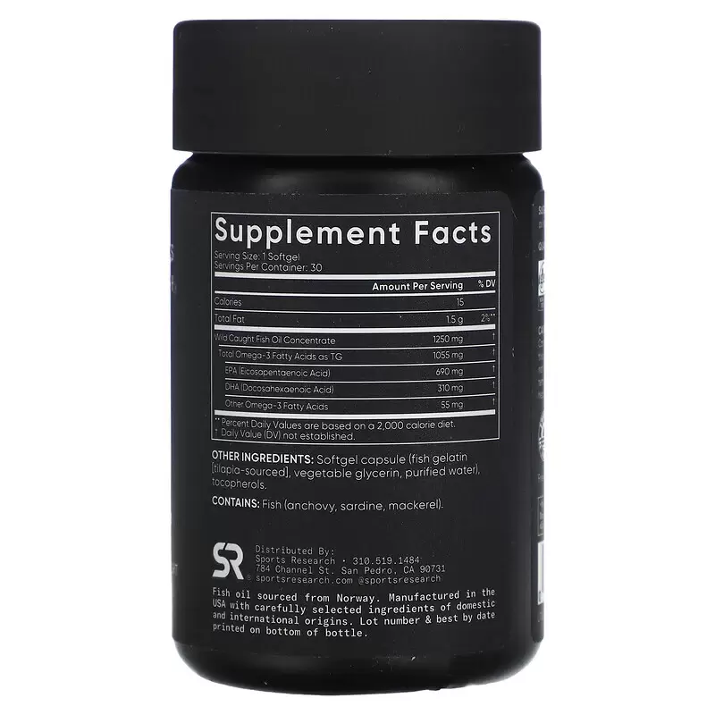 Рыбий жир с Omega-3 от компании Sports Research содержит в три раза больше активных действующий веществ в каждой капсуле. В качестве исходного продукта используется дикая рыба северных видов, выловленная в экологически чистых регионах.