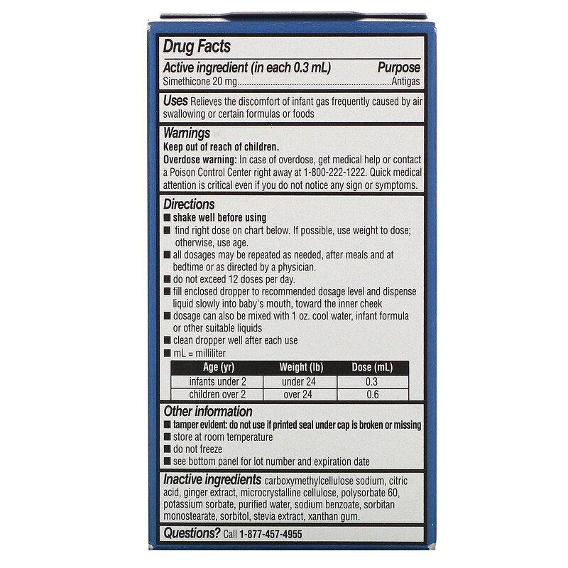 Младенцам до 2-х лет и массой менее 11 кг. следует давать не более 0.3 мл. Для малышей, с массой тела более 11 кг., которым уже исполнилось два годика рекомендуемая доза составляет 0.6 мл. Перед употреблением капли следует встряхнуть. Средство следует смешать с 30 мл. воды, затем заполнить пипетку до рекомендуемого уровня и осторожно выдавить в рот, во внутреннюю часть щеки ребёнка.