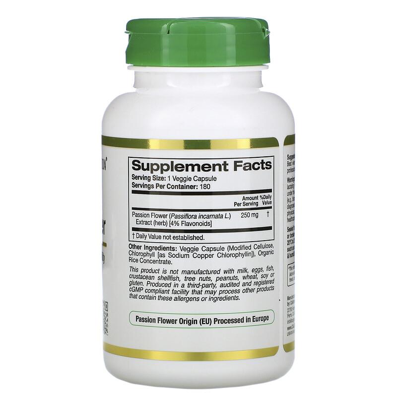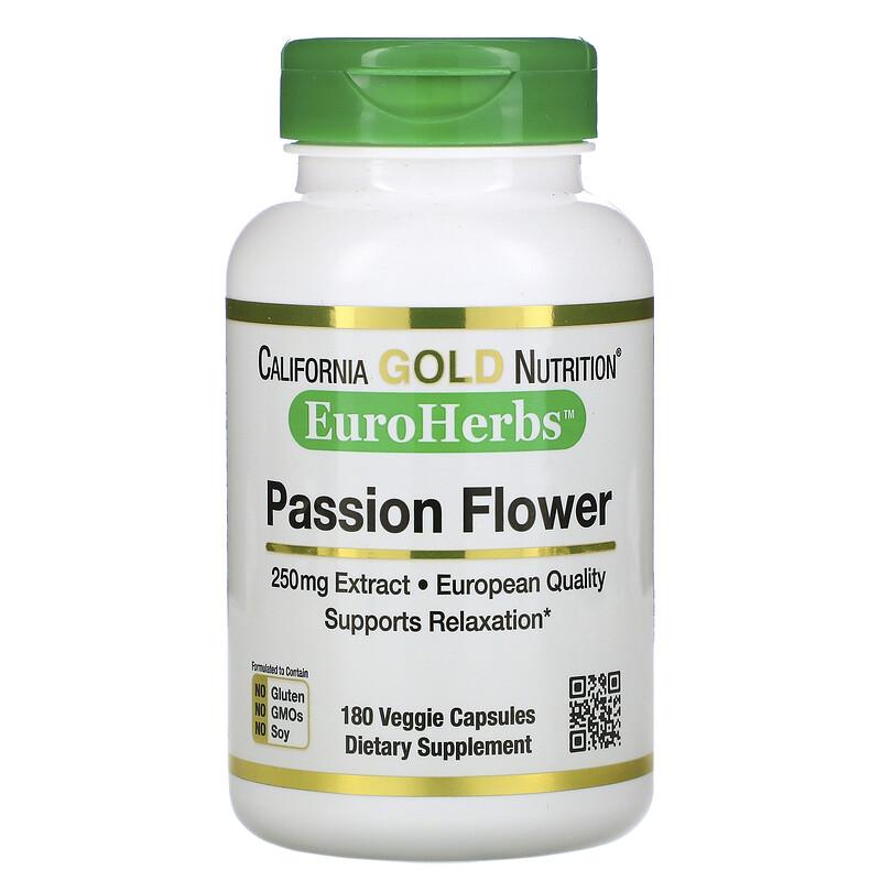 Страстоцвет, Passion Flower, California Gold Nutrition, EuroHerbs, 250 мг, 180 растительных капсул