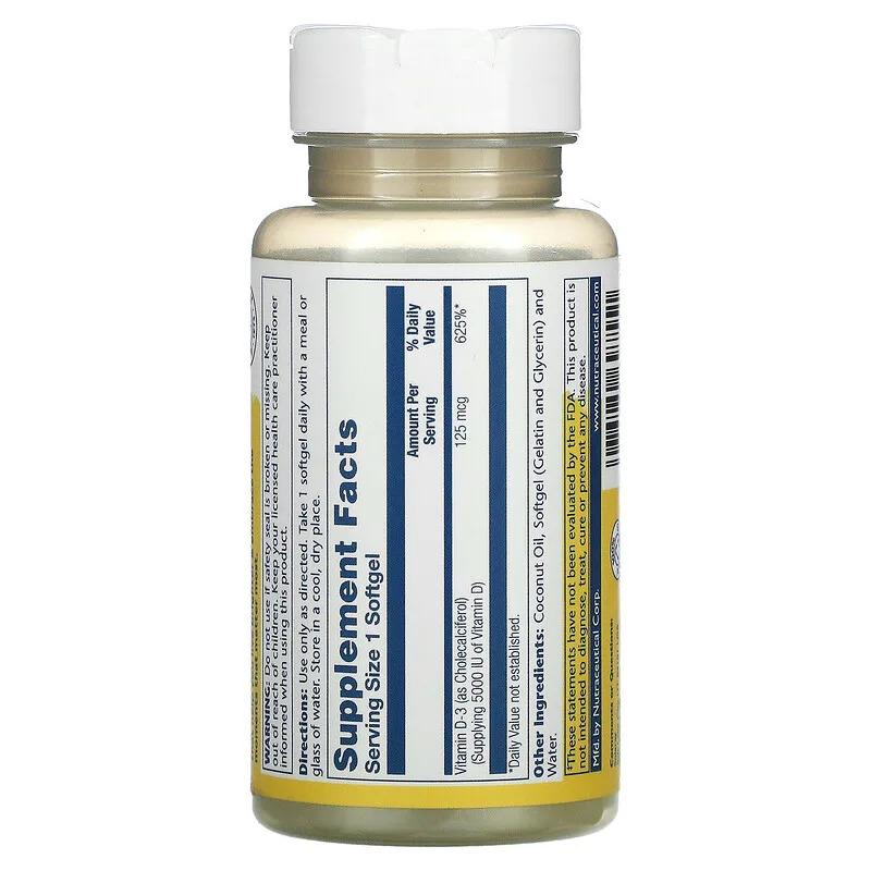 Супер био витамин D-3, 5000 МЕ, Solaray, 120 мягких таблеток