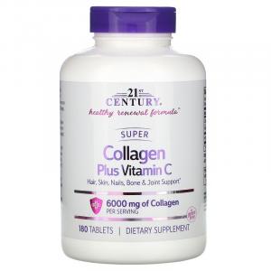 Суперколлаген с витамином C, Super Collagen Plus Vitamin C, 21st Century, 6000 мг, 180 таблеток