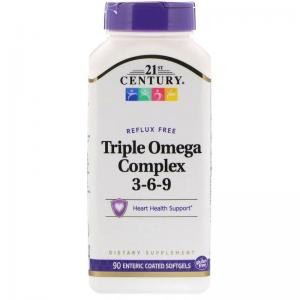 Тройной Комплекс Омега 3-6-9 от компании 21st Century – источник ударной порции полиненасыщенных жирных кислот. Он включает рыбий жир, масла льна и бурачника, которые содержатся в оптимальных пропорциях. Предназначен для поддержания здоровья человека.