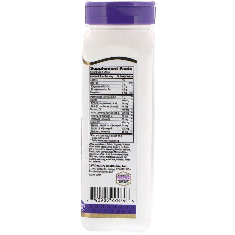 Тройной Комплекс Омега 3-6-9, 21st Century, 90 гелевых капсул