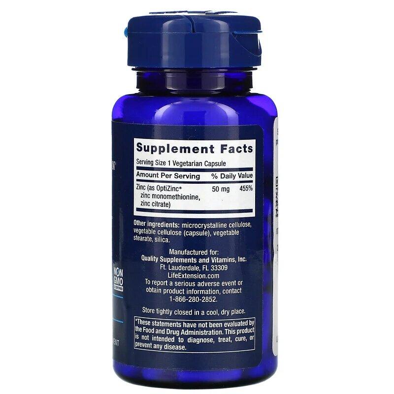 Цинк высокой эффективности, Zinc Caps, High Potency, Life Extension, 50 мг, 90 вегетарианских капсул