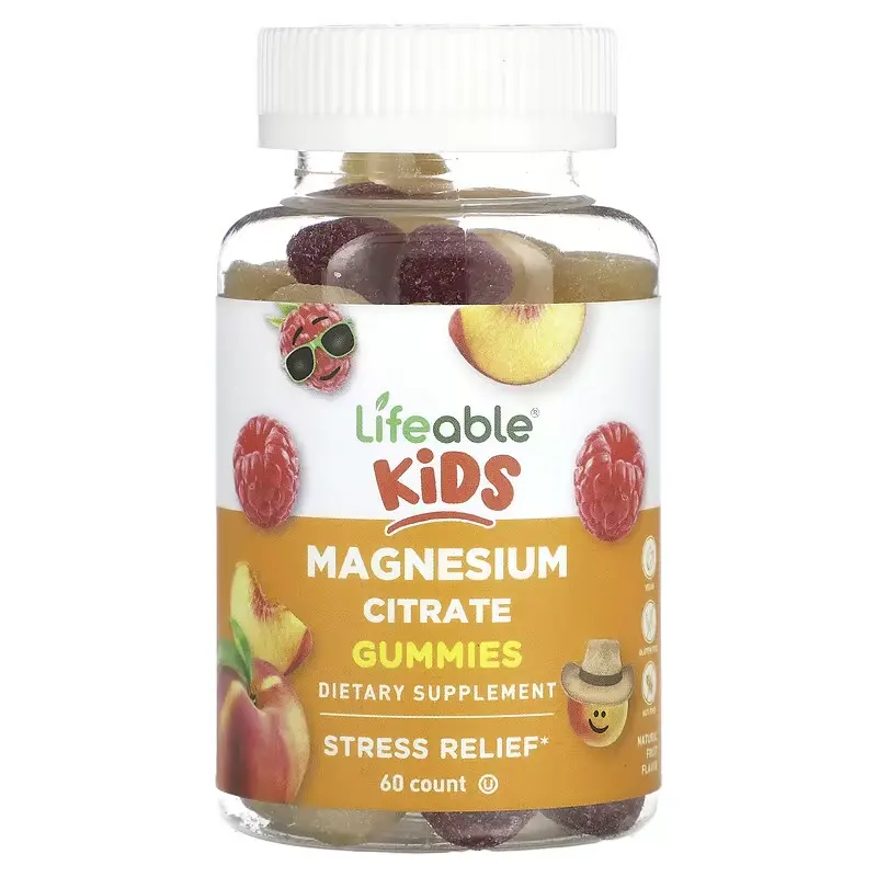 Цитрат магния для детей, с натуральным фруктовым вкусом, 85 мг, Lifeable, 60 жевательных мармеладок