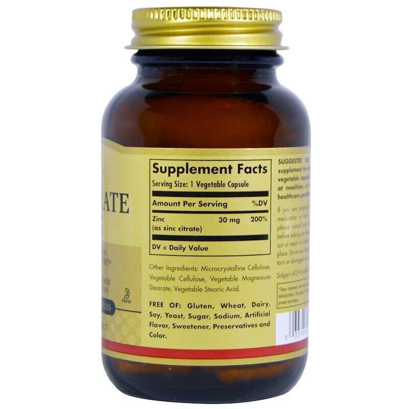 Цитрат цинку, Zinc citrate, Solgar, 30 мг, 100 капсул