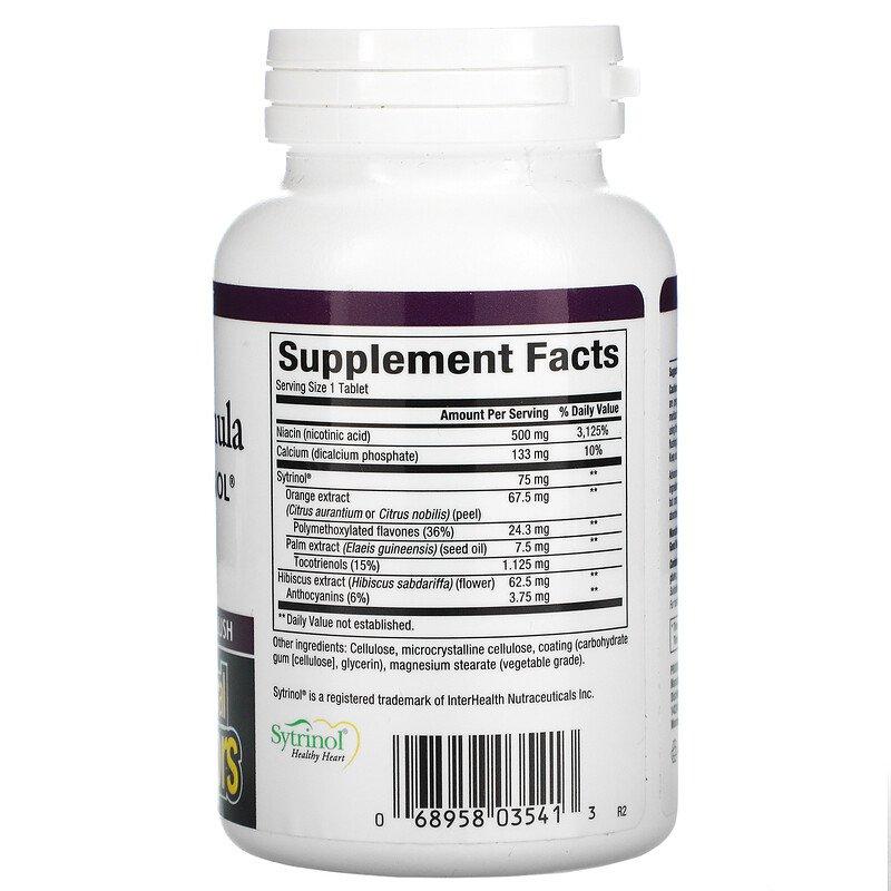 Advanced Cholesterol Formula – полезная пищевая добавка. Ее производством занимается Natural Factors. Выпускается средство в таблетированной форме. Содержит гибискус, никотиновую кислоту и Sytrinol®. Фасуется в пластиковую баночку. В упаковке 60 таблеток. В препарате нет белка, ГМО. Он подходит для веганов и вегетарианцев.