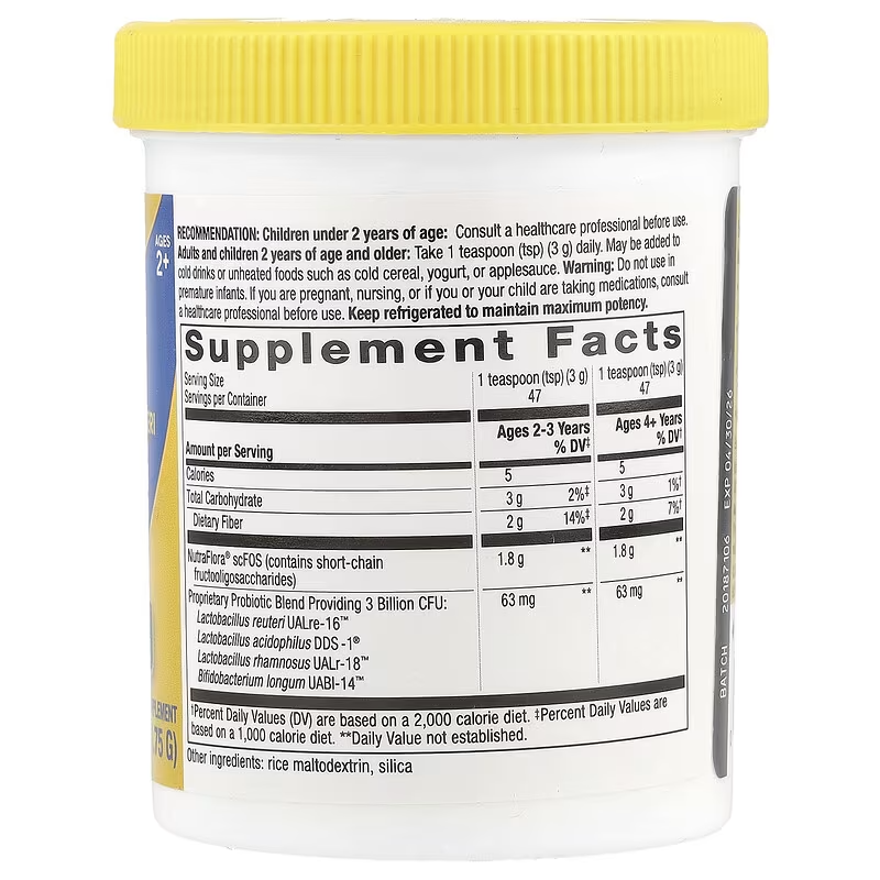 От 2 лет и старше: принимать по 1 чайной ложке (3 г) в день между приемами пищи. Можно добавлять к холодным напиткам или необработанным продуктам, таким как холодные хлопья, йогурт или яблочное пюре. Хранить в холодильнике для сохранения максимальной эффективности.