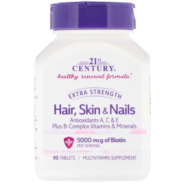 Витамины для кожи, ногтей и волос производства 21st Century в формате 90 таблеток – это комплекс для восстановления необходимых ресурсов для красоты.