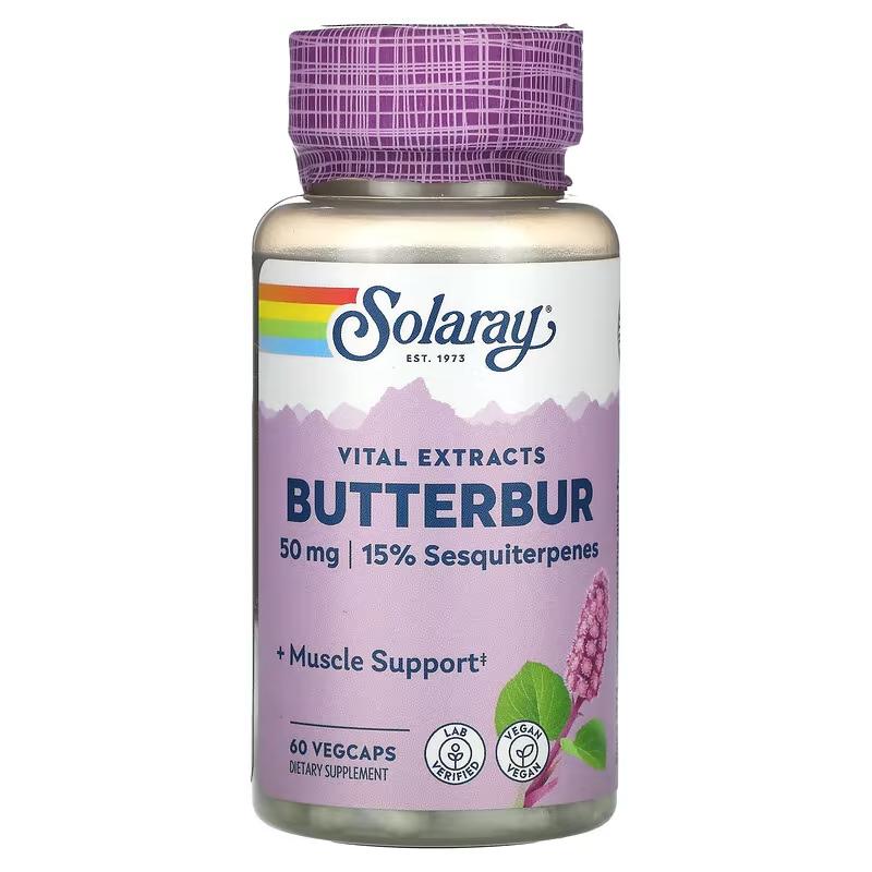 Экстракт корня белокопытника, Vital Extracts Butterbur, Solaray, 50 мг, 60 растительных капсул