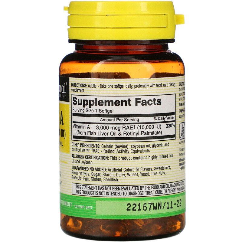 Витамин A, Vitamin A, Mason Natural, 10000 ME, 100 капсул