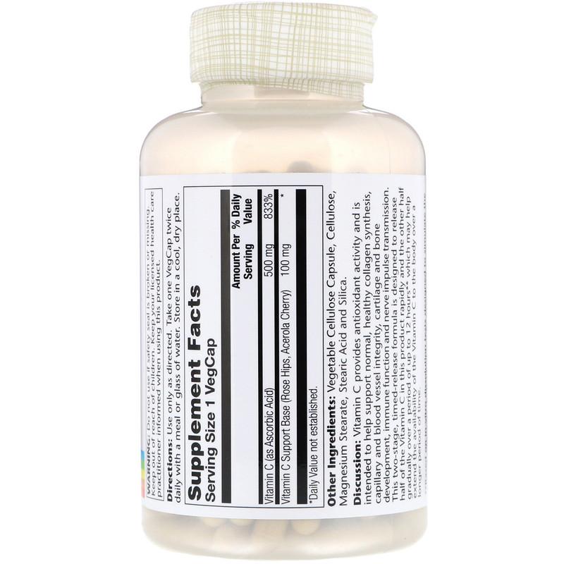 Витамин C с медленным высвобождением, Vitamin C Timed Release, Solaray, 500 мг, 250 капсул