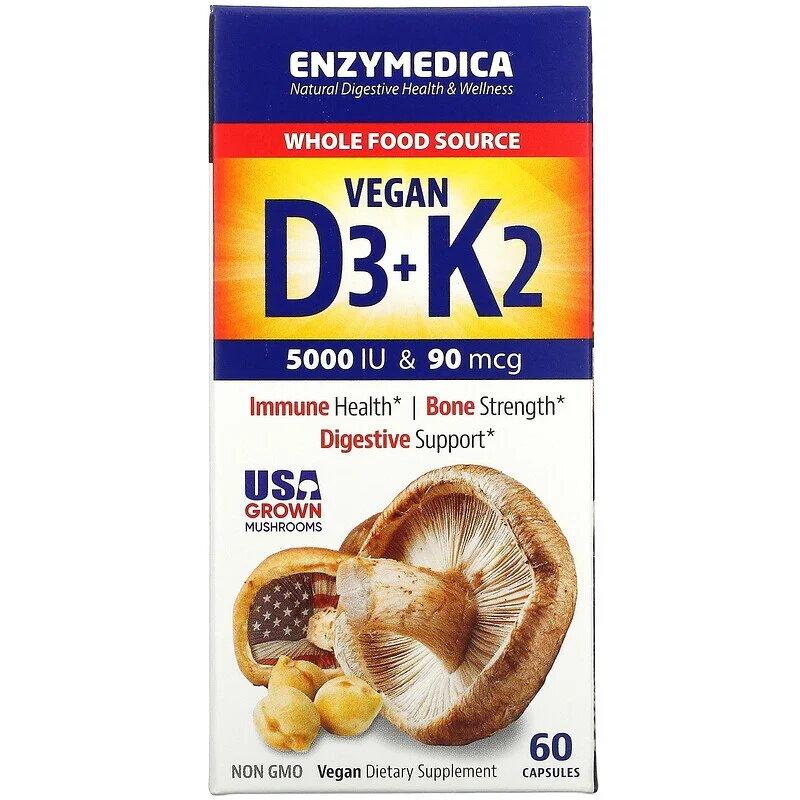 Витамин D3 + K2 веганский, Vegan Vitamin D3 + K2, Enzymedica, 60 капсул