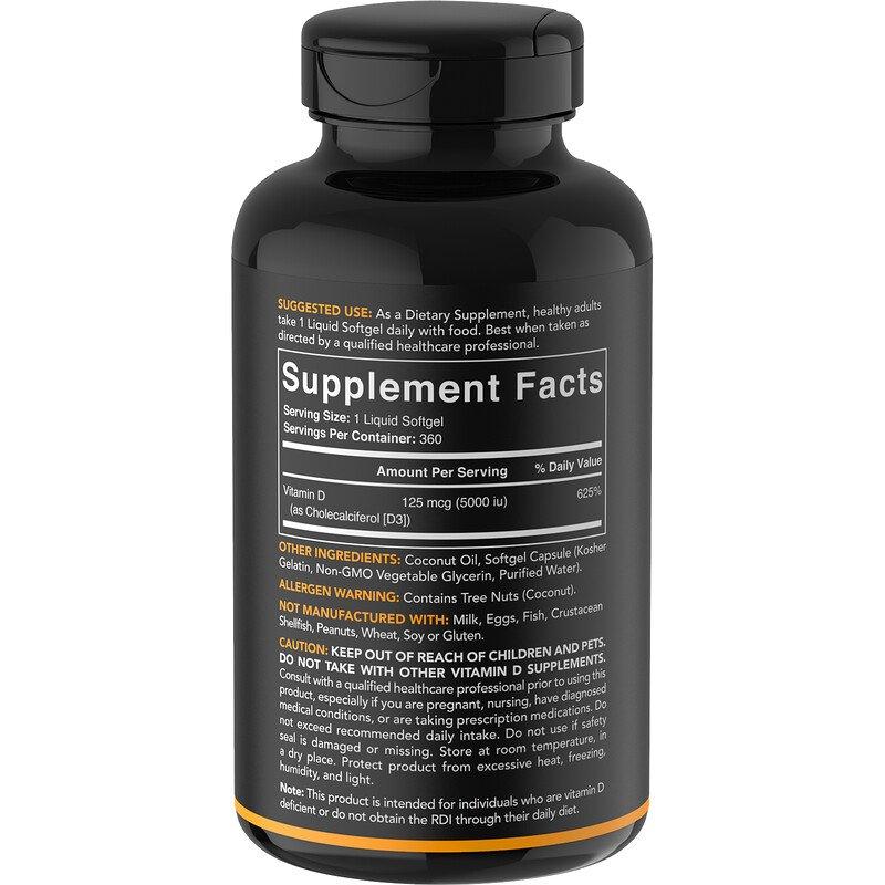 Витамин D3 с кокосовым маслом, Sports Research, 125 мкг (5000 МЕ), 360 мягких таблеток