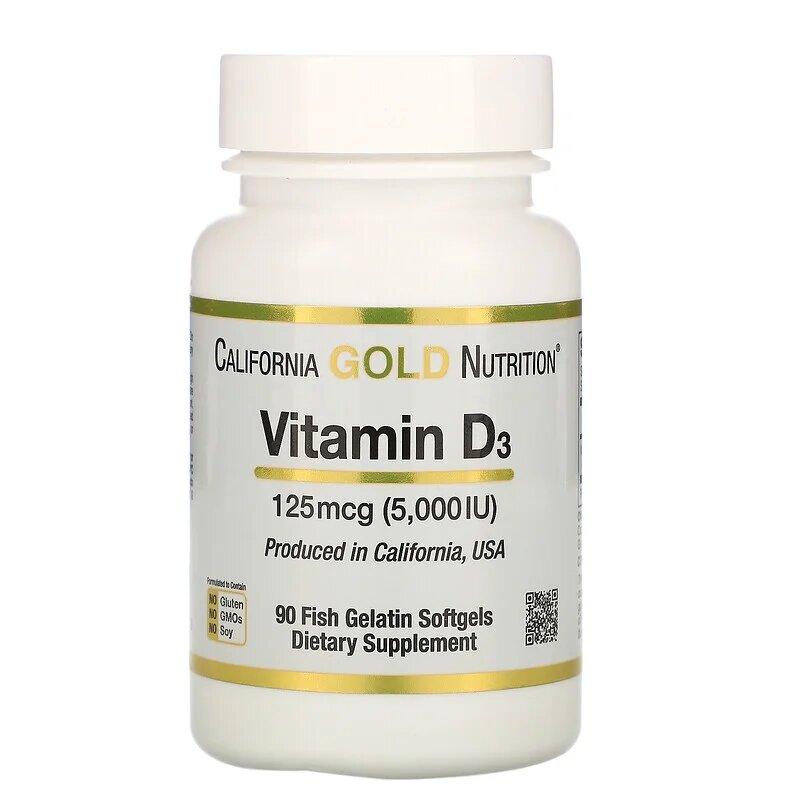 Витамин Д3, Vitamin D3, California Gold Nutrition, 125 мкг (5000 МЕ), 90 рыбно-желатиновых капсул