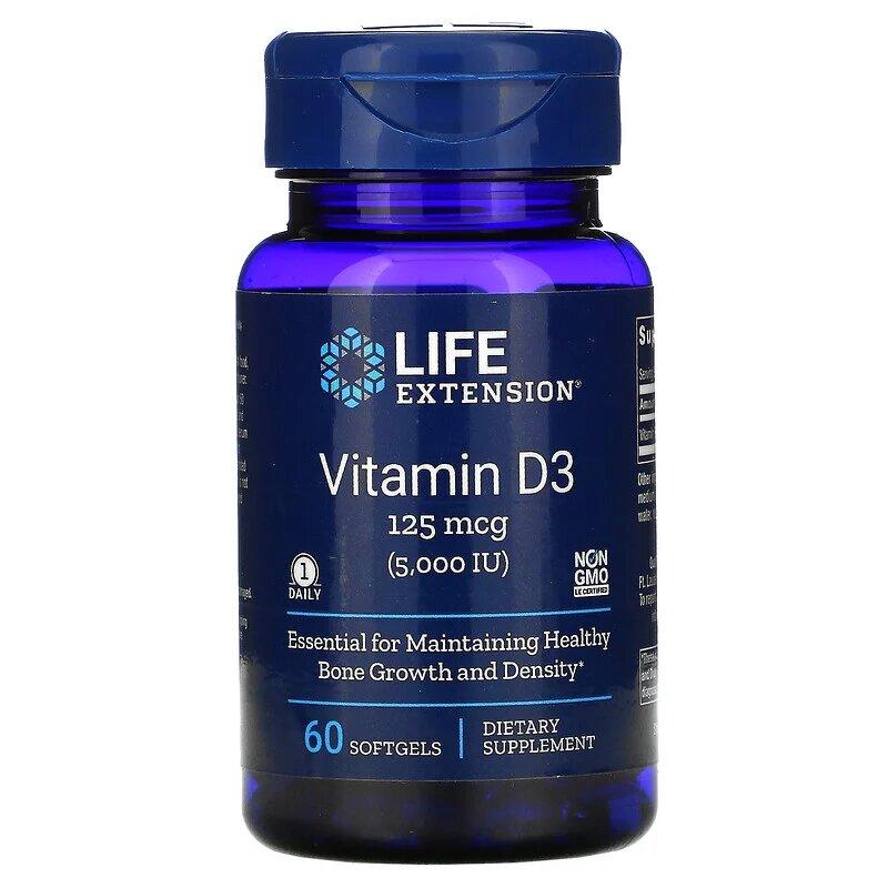 Витамин D3, Vitamin D3, Life Extension, 125 мкг (5000 МЕ), 60 гелевых капсул