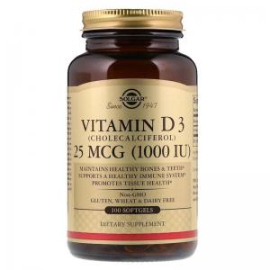 Витамин Д3, Vitamin D3, Solgar, 25 мкг (1000 МЕ), 100 капсул