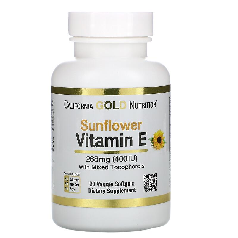 Витамин Е из подсолнечника с токоферолами, Sunflower Vitamin E, California Gold Nutrition, 268 мг, 90 капсул