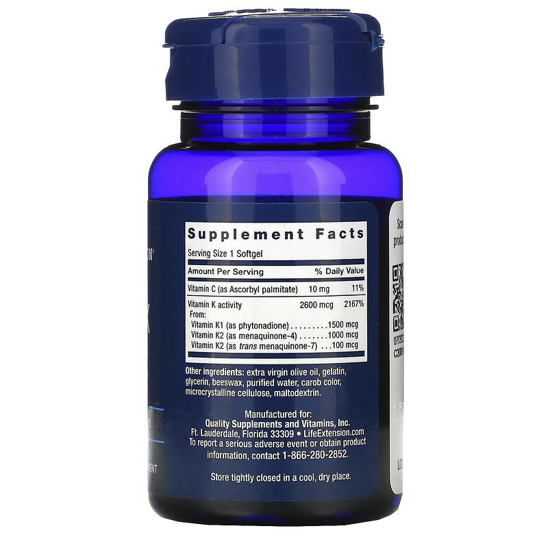 Витаминный комплекс «Super K» – супер полезная пищевая добавка. Препарат предназначен для поддержания оптимального баланса кальция в организме. Из-за дефицита витамина K ухудшается состояние кожи, волос, становятся ломкими кости, появляются заболевания суставов. В состав комплекса Витамин К, Super K, Life Extension входят формы K1 и К2, в том числе менахинон-4 (MK-4) и менахинон-7 (MK-7). Пищевая добавка улучшает обменные процессы, усвоение кальция из продуктов. После приема курса нормализуется состояние костных тканей, суставов.