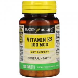 Витамин K2, Vitamin K2, Mason Natural, 100 мкг, 100 таблеток