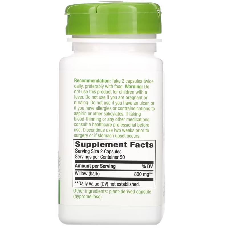 Кора ивы, Willow Bark, Nature's Way, 400 мг, 100 веганских капсул