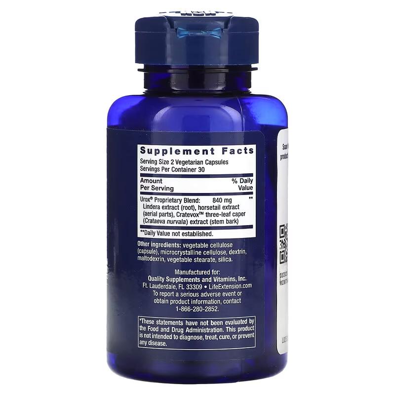 | Запатентованная смесь Urox®: Экстракт корня липы, экстракт надземных частей хвоща, Cratevox™ экстракт стеблей каперсов трехлистного (Crataeva nurvala) |