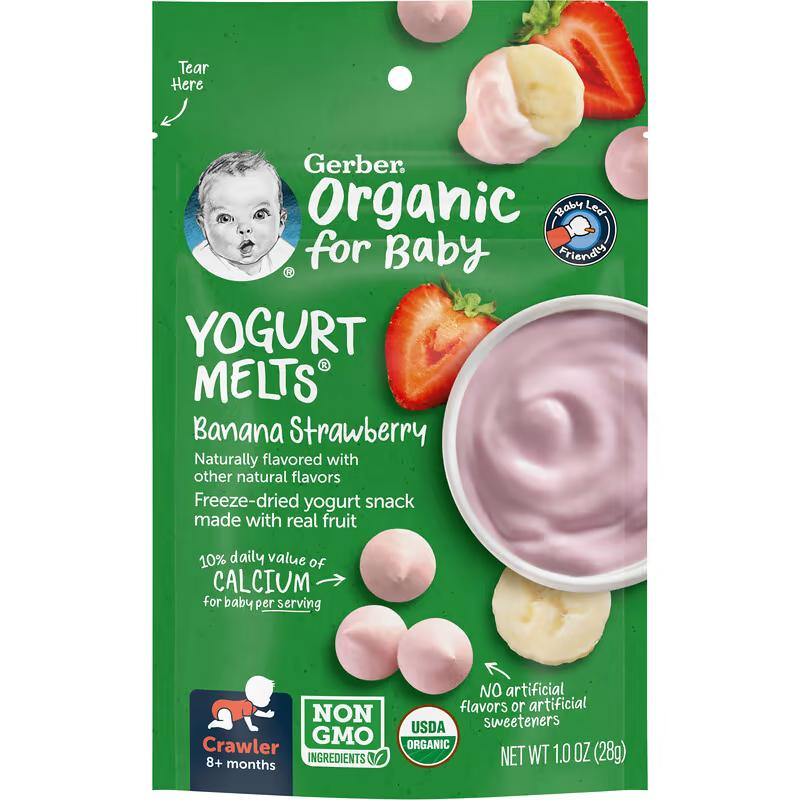 Йогурт для малышей от 8 месяцев, вкус банана и клубники, Yogurt Melts Banana Strawberry, Gerber, Organic, 28 г