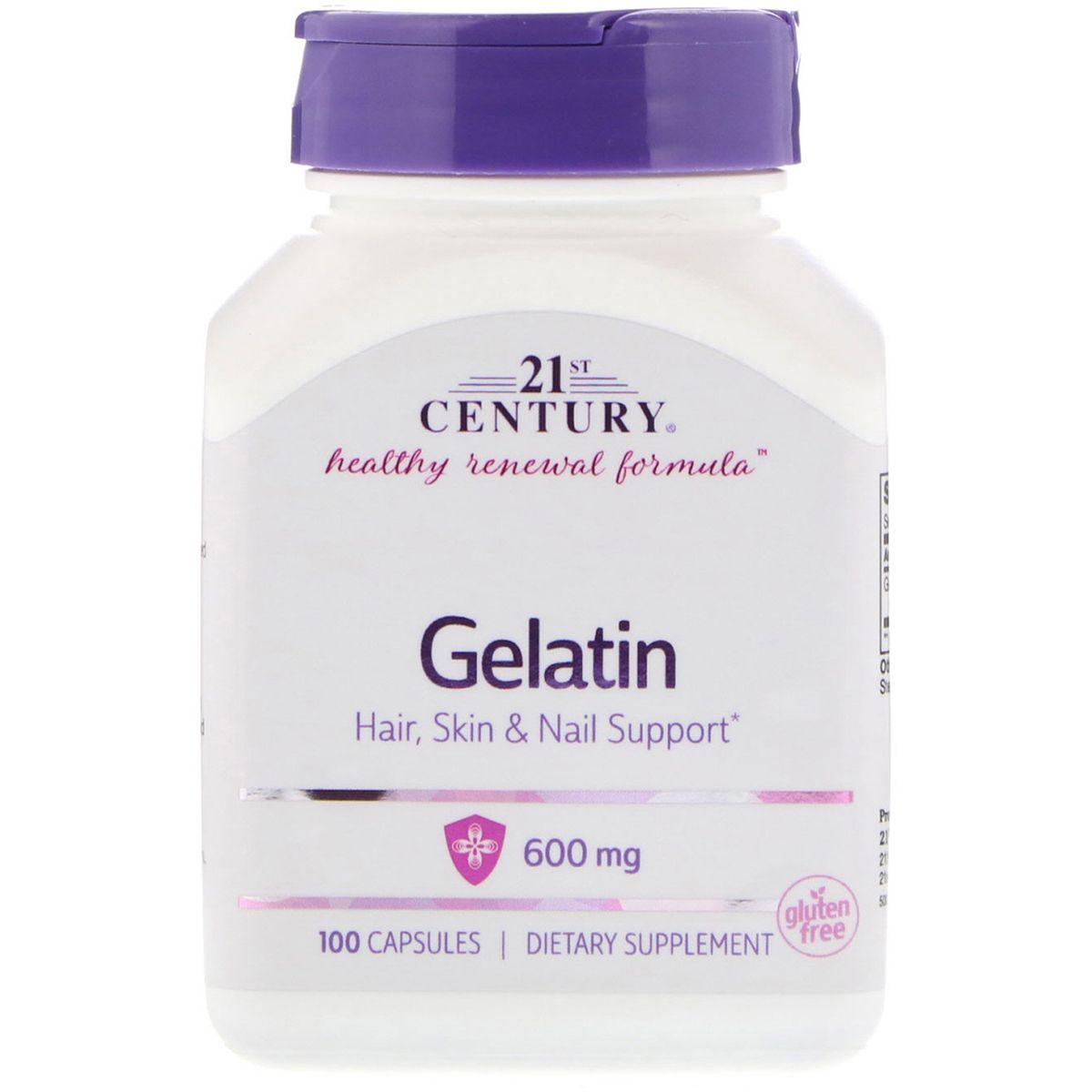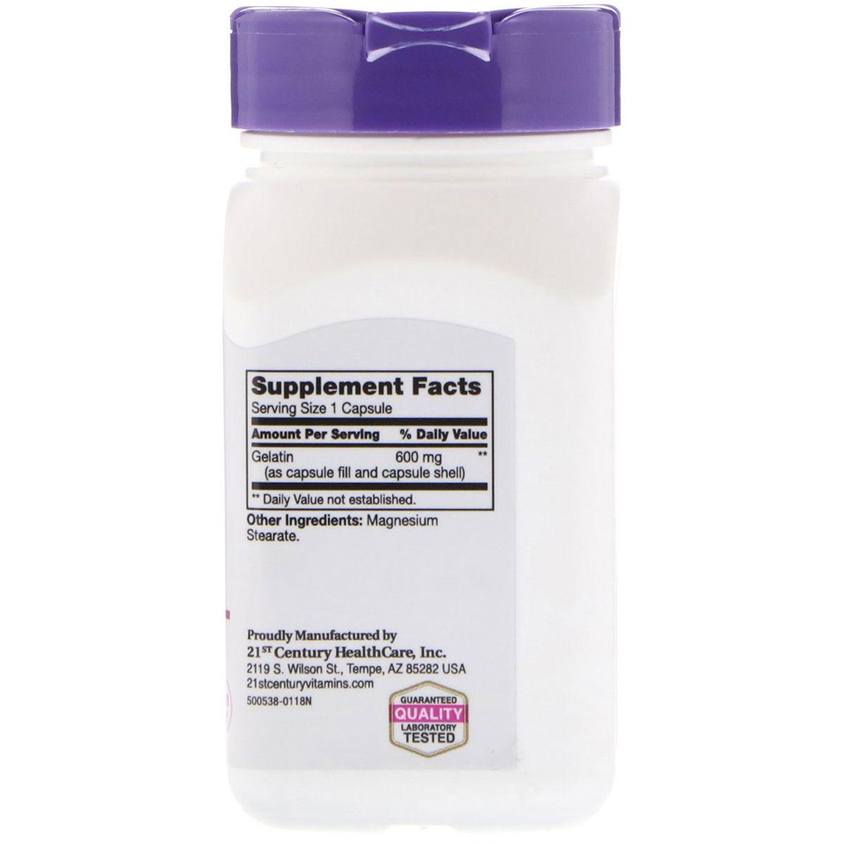 Желатин, 21st Century, Gelatin, 600 мг, 100 капсул