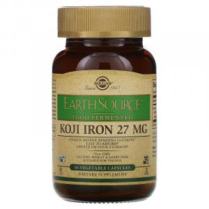 Железо коджи, Koji Iron, Solgar, EarthSource Food Fermented, 27 мг, 60 растительных капсул