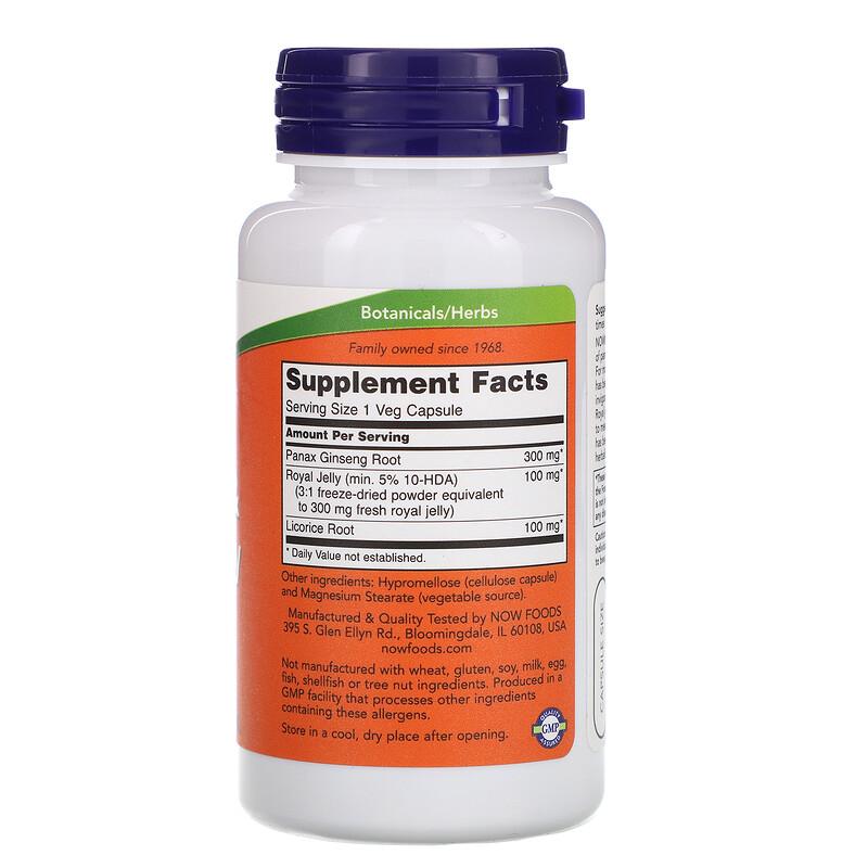 Женьшень и маточное молочко, Ginseng Royal Jelly, Now Foods, 90 растительных капсул