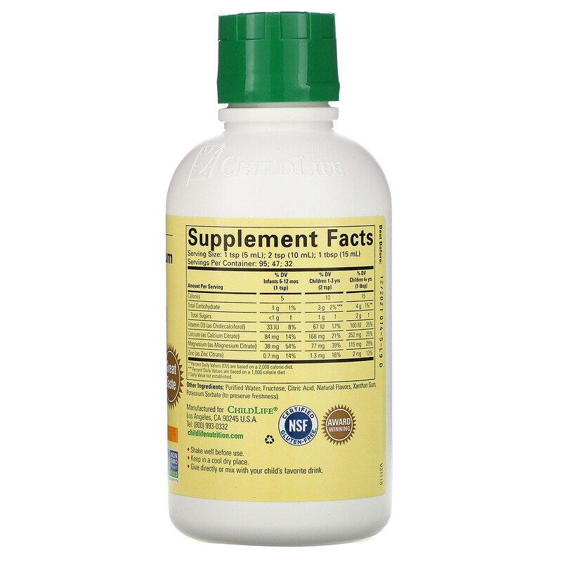 Жидкий кальций с добавкой магния от компании ChildLife содержит два этих важных микроэлемента в оптимальной для детского организма пропорции. Также в состав входят дополнительные компоненты — цинк и витамин D. Именно в таком сочетании педиатры рекомендуют употреблять эти микроэлементы. Ведь для быстрого и полного усвоения кальция он должен поступать в организм одновременно с цинком, магнием и витамином D. Это обеспечит полноценное развитие ребенка, здоровый рост костей и укрепление зубов.