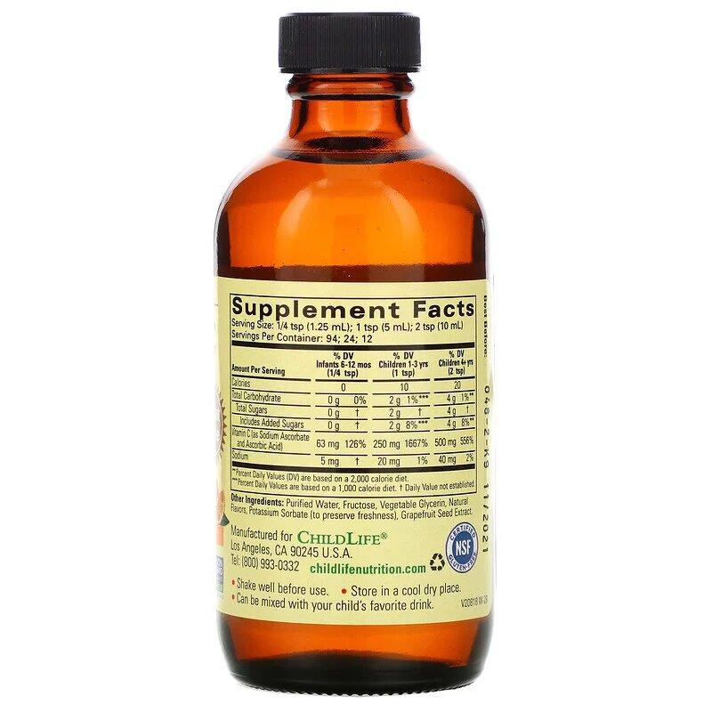 Жидкий витамин C, с натуральным апельсиновым вкусом, ChildLife, 4 жидкие унции (118,5 мл)
