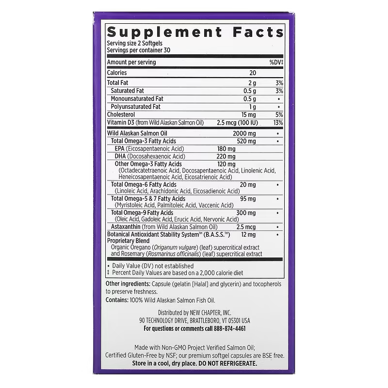 Польза рыбьего жира неоспорима, особенно для организма, ослабленного болезнью или долгой зимой. За сотни лет применения форма употребления и методы получения доведены практически до совершенства, и пример этому - Wholemega производства компании New Chapter. Янтарный оттенок жира аляскинского лосося не только приятен на вкус, но и, благодаря применению современных технологий, содержит витамин Д3, астаксантин, Омегу-3, докозагексгеновую кислоту и другие полезные вещества.