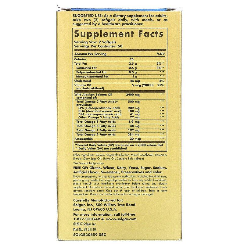 Жир из лосося аляскинского (Full Spectrum Omega), Омега, Solgar, 120 капсул