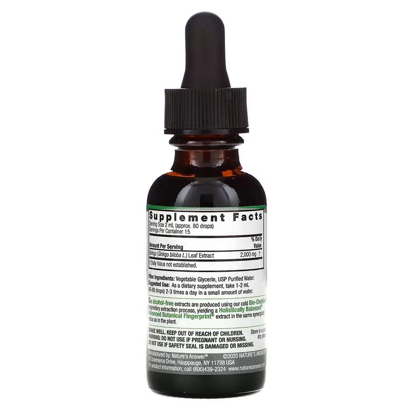 Рідкий екстракт листя Гінкго Білоба, без спирту, Ginkgo Leaf Fluid Extract Alcohol free, Nature's Answer, 2000 мг, 30 мл (NTA-00620)