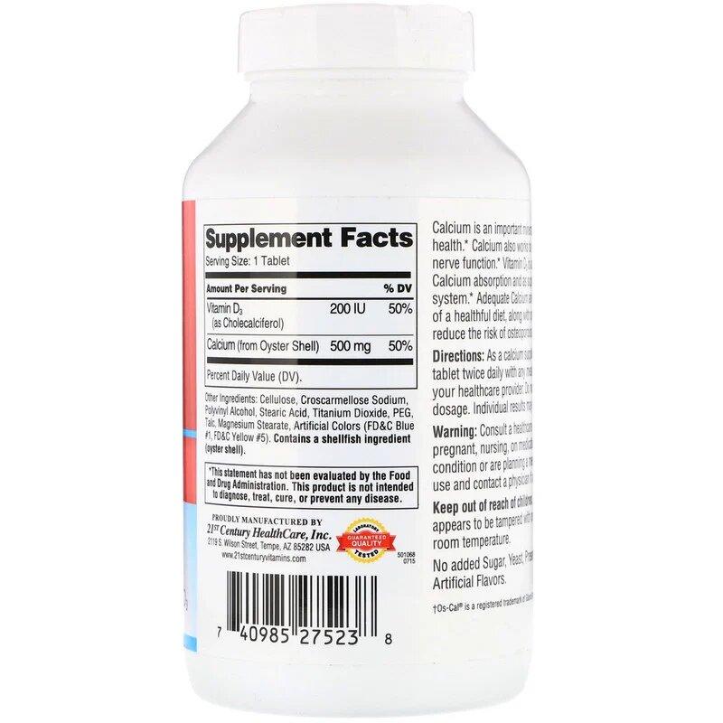 Харчова добавка Calcium 500 + D3 від американської компанії 21st Century збільшує міцність кісткової тканини, забезпечує м'язові скорочення, бере участь у роботі ендокринних залоз та забезпечує нормальне перебіг інших важливих процесів.