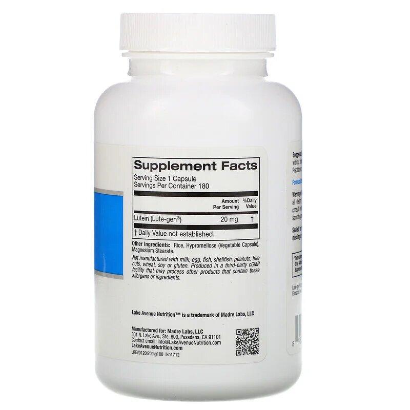 Лютеїн, Lutein, Lake Avenue Nutrition, 20 мг, 180 капсул