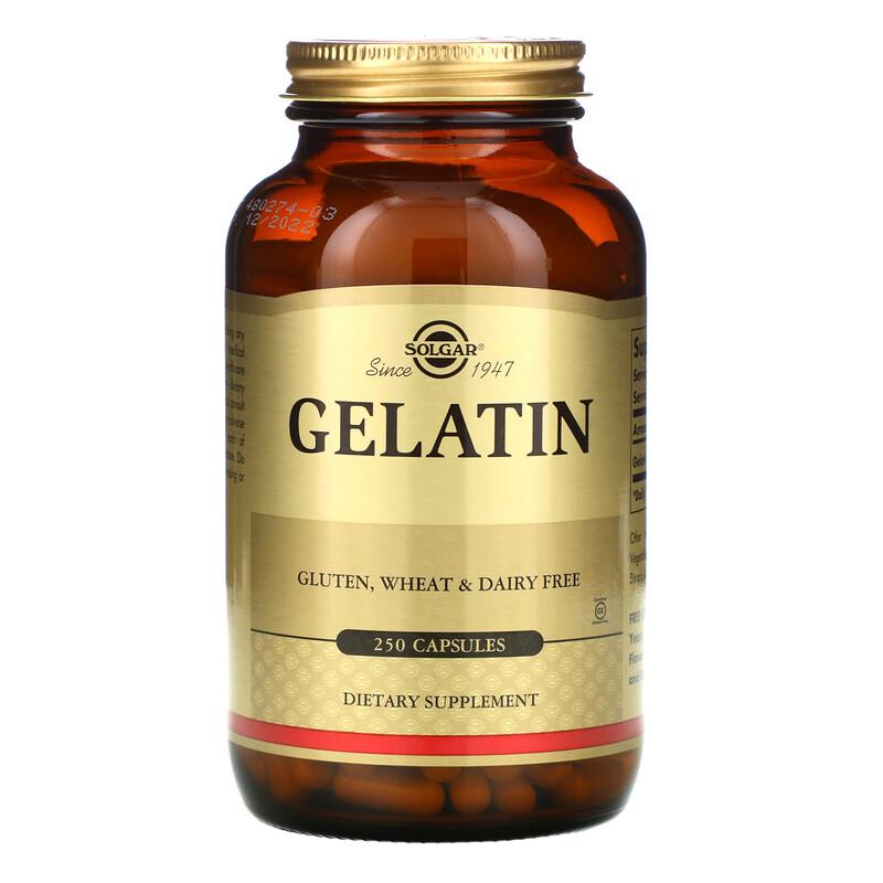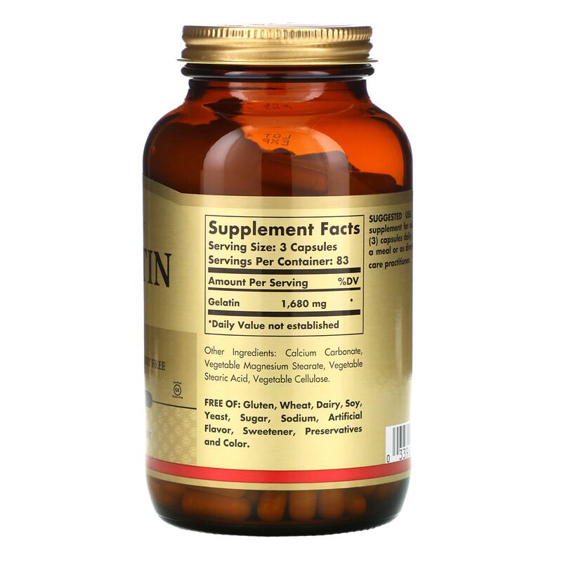 Натуральний желатин із карбонатом кальцію, Gelatin, Solgar, 250 капсул