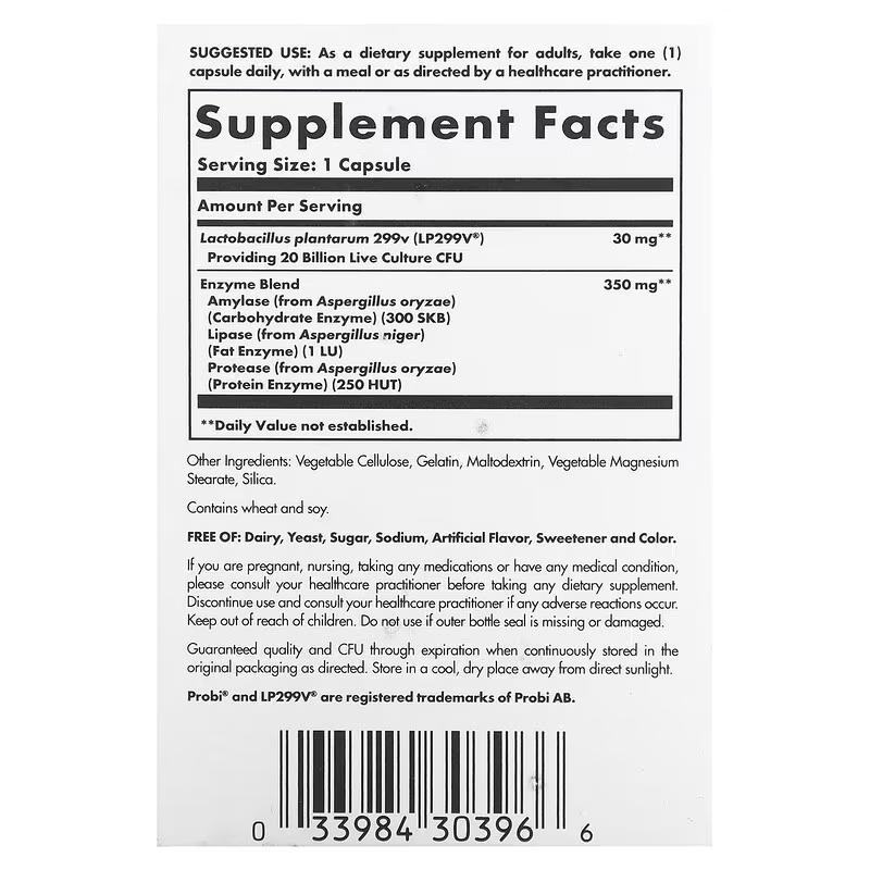 Пробіотичний ферментний комплекс, 20 млрд КУО, Probi Plus Enzyme Probiotic Enzyme Complex 20 Billion CFUs, Solgar, 30 капсул