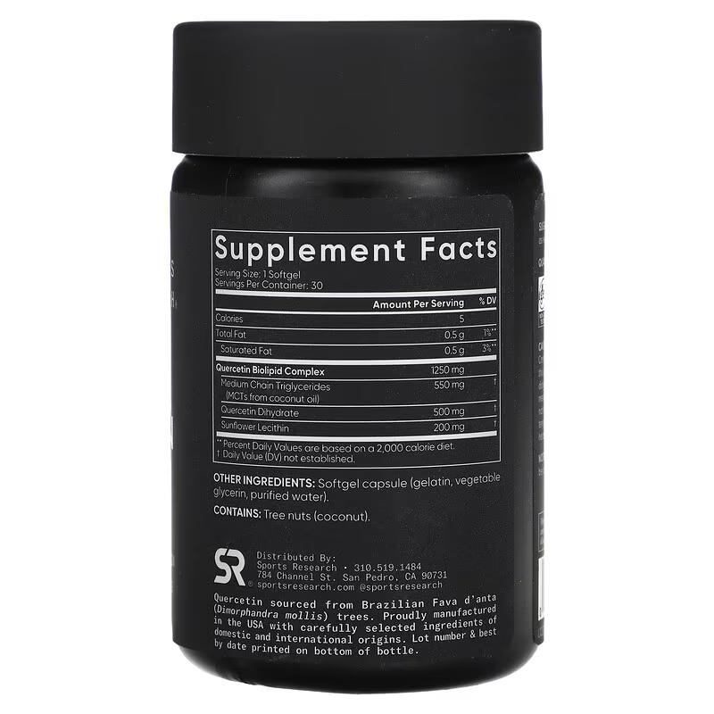Кверцетин від Sports Research – це харчова добавка представлена у формі капсул. Кожна упаковка містить 30 капсул, кожна з яких містить потужний антиоксидант кверцетин, витягнутий з натуральних джерел. Кверцетин відомий своїми корисними властивостями, включаючи підтримку імунної системи, антиоксидантний захист та допомогу у боротьбі із запаленням. Цей флавоноїд може допомогти знизити рівень запалення, зміцнити захисні функції організму та підтримувати здоров'я серцево-судинної системи. Формула кверцетин від компанії Sports Research забезпечує високу біодоступність, завдяки чому активні компоненти швидше засвоюються організмом.