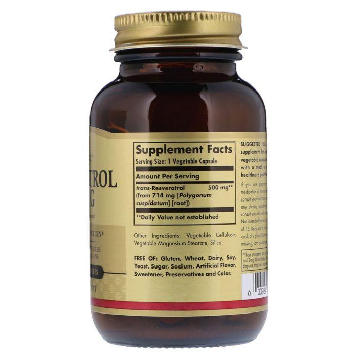 Ресвератрол, Solgar, дозування 500 мг, в упаковці 30 гелевих таблеток - це харчова добавка, у складі якої є природний транс-ресвератрол. БАД ідеально підходить для вживання вегетаріанцями. Resveratrol не містить глютену, пшениці та продуктів тваринного походження, у тому числі молочних.